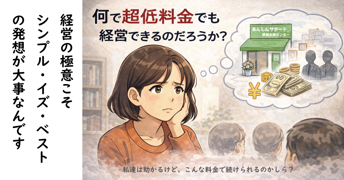 あんしんサポートの項目設定の基本は「原価+α」という考え方、理由は葬儀社は八百屋さん同様で魚屋、総菜のように手間を掛ける葬具ではないからです。