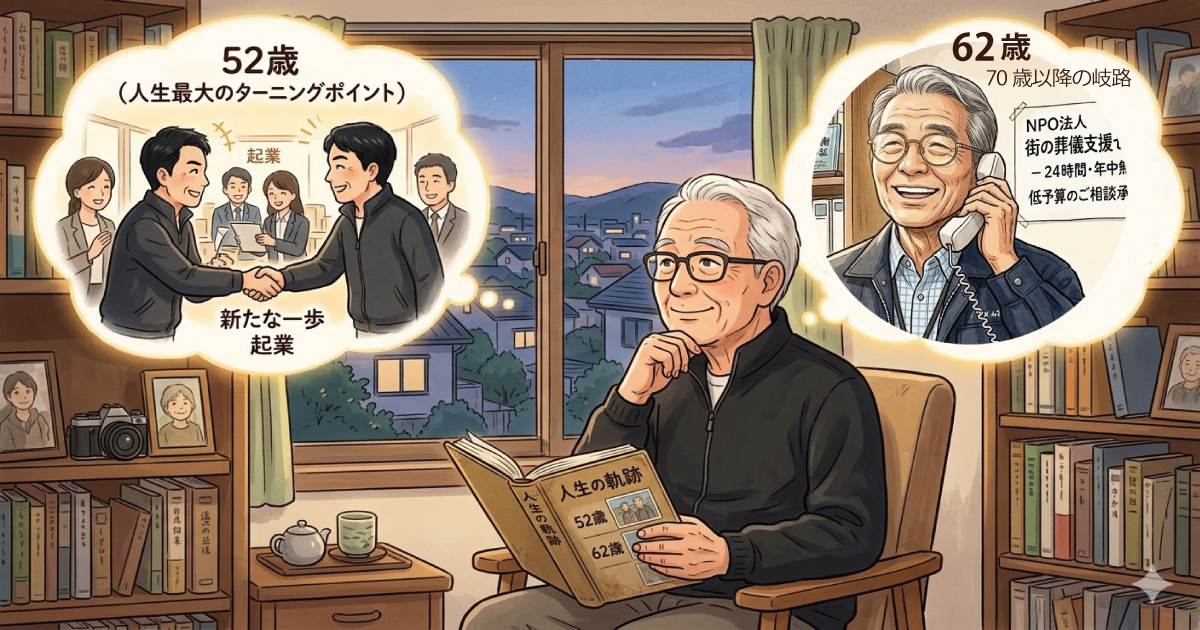 もし父親逝去の一報が42才だったら美容業から撤退しておらず、62才だったら365日無休、24時間対応の葬儀支援を始める気力は無かったでしょう。