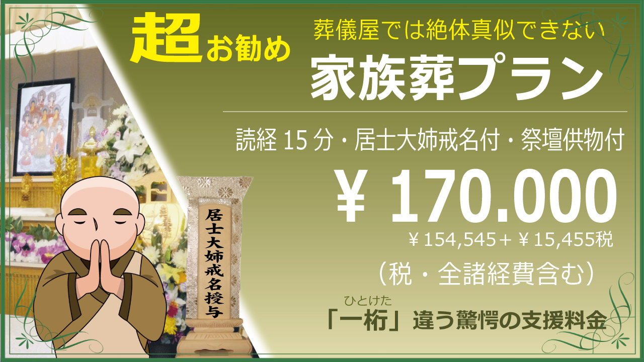 ⑦直葬全国平均17万円で読経・戒名付の家族葬プランが完成すれば喜ばれる『17万円家族葬プラン』