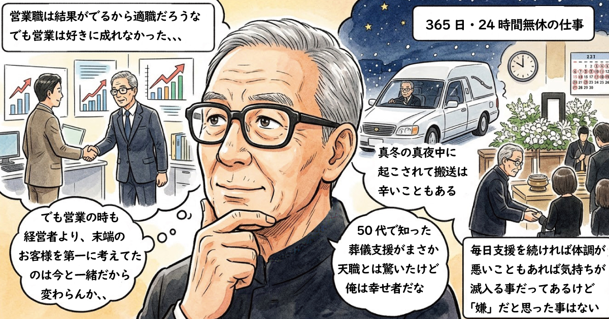 葬儀屋は胡散臭いイメージしかなく絶体したくない商売だけど、千明がどんな人間か分かりませんから、葬儀社営業8年間続けてる人の前で葬儀屋の悪口を言うのも限界があります。