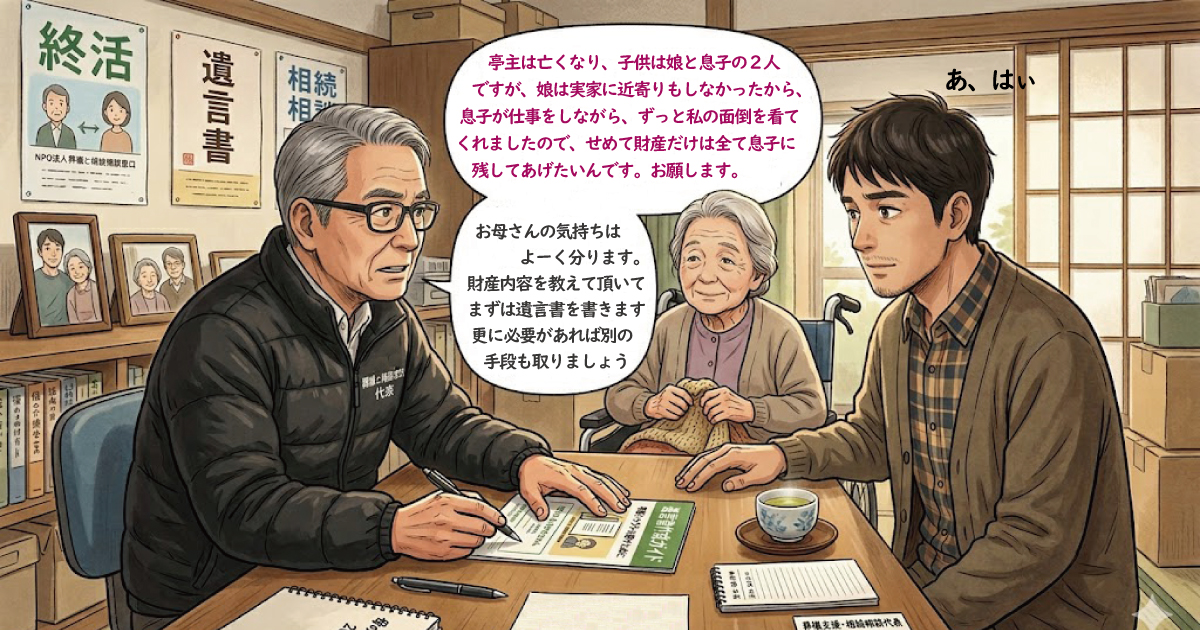 死後手続きの中で家族間の闘争が起こるのは「相続」、面倒は看てくれてないとしても一応子供だからと「〇〇〇万円あげるから、他は全て面倒を看てる子供に渡すよ」と伝え、その時点では対象の子供も了承する。