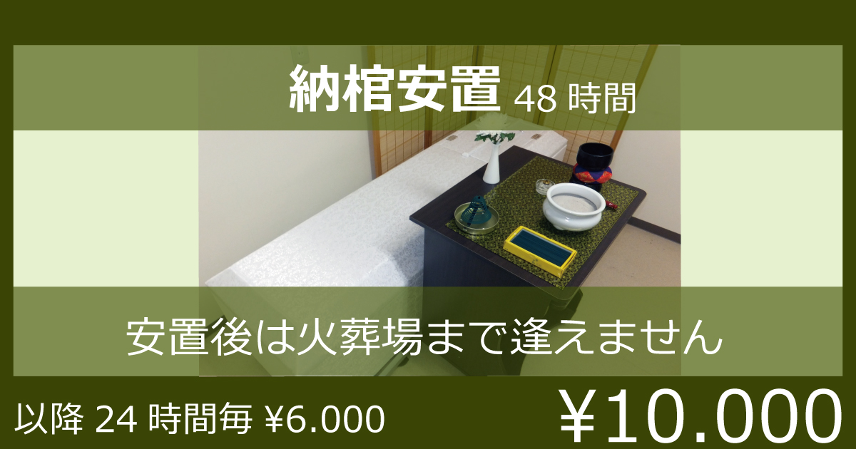 • 斎場都合で安置延びても追加一切無し